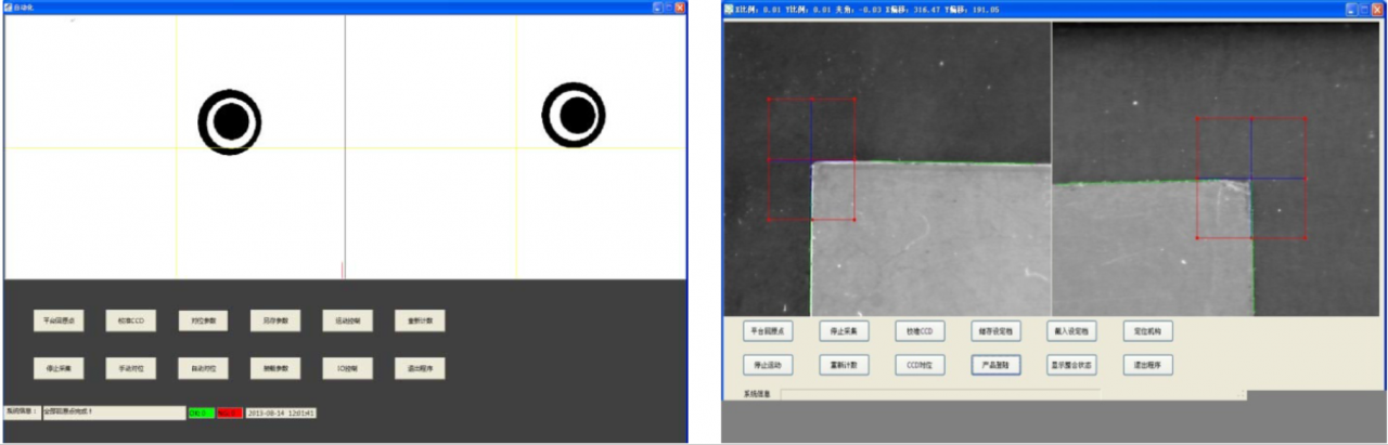 3、產(chǎn)品到固定位置觸發(fā)信號,通知相機進行采圖處理,并講圖像信息上傳至數(shù)據(jù)庫與標準數(shù)據(jù)進行處理、分析、判斷。若檢測到合格/不合格產(chǎn)品,顯示屏實時顯示數(shù)據(jù)信息并做出標識,輸出OK/NG信號。 需每次來料位置偏差較小,以保證在視野范圍內。